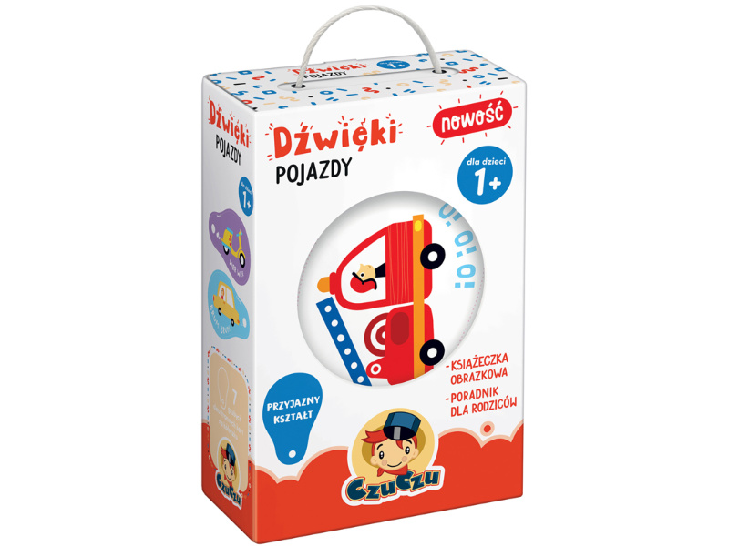 Obrazkowa książeczka na kółku zawiera ilustracje z pojazdami, które zawierają odpowiednią dla dziecka liczbę szczegółów. Baw się z dzieckiem nazywając kolory, kształty i dźwięki. Pokazuj paluszkiem na wybrane elementy i ucz nowych słów. Nauka przez zabawę to wspaniały sposób na spędzenie czasu ze swoją pociechą. Niewielkie wymiary książeczki pozwalają na zabranie jej w podróże i na spacery, a poręczne kółeczko umożliwia na zawieszenie kart przy wózku lub używanie ich osobno.