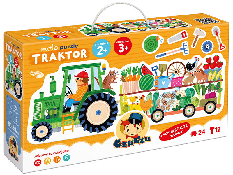 Hej, dzieciaki! Odpalamy silnik i ruszamy! Moto Puzzle Traktor to edukacyjny zestaw, który zainspiruje do mnóstwa ciekawych zabaw. W środku znajdziecie duże puzzle, dokładane obrazki i poradnik pełen pomysłów na rozwijające aktywności.