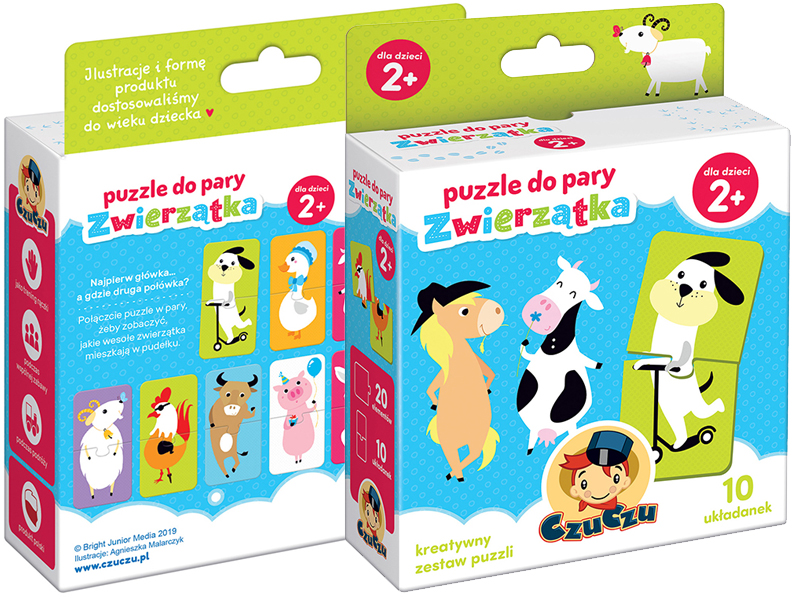 Dziecko rozwija się od najwcześniejszych etapów życia, dlatego warto zadbać o jego rozwój w najlepszy sposób. Pomóc mogą w tym Puzzle do pary Zwierzątka, które przeznaczone są dla dzieci, które ukończyły 2 latka. Zestaw składa się z 10 dwuelementowych układanek, które wspomogą rozwój manualny Twojego dziecka. Polega ona na dopasowaniu do siebie dwóch połówek zwierzątek. Zademonstruj maluchowi, które kształty pasują do siebie oraz opowiadaj co znajduje się na ilustracjach.