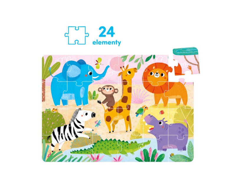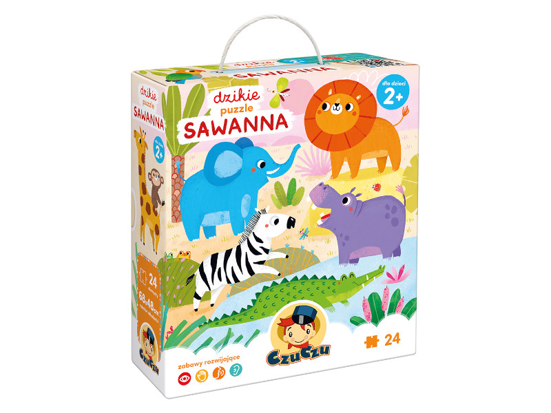 Dziecko rozwija się od najwcześniejszych etapów życia, dlatego warto zadbać o jego rozwój w najlepszy sposób. Pomóc mogą w tym Puzzle CzuCzu, które przeznaczone są dla dzieci, które ukończyły 2 latka. Zestaw składa się z 24 elementów, które wspomogą rozwój manualny Twojego dziecka. Zademonstruj maluchowi elementy i kształty, które pasują do siebie oraz opowiadaj, co znajduje się na ilustracjach. Zabawa puzzlami sprawia, że najmłodsi kształtują motorykę oraz inspirują się do dalszego pogłębiania wiedzy o naturze i świecie zewnętrznym.