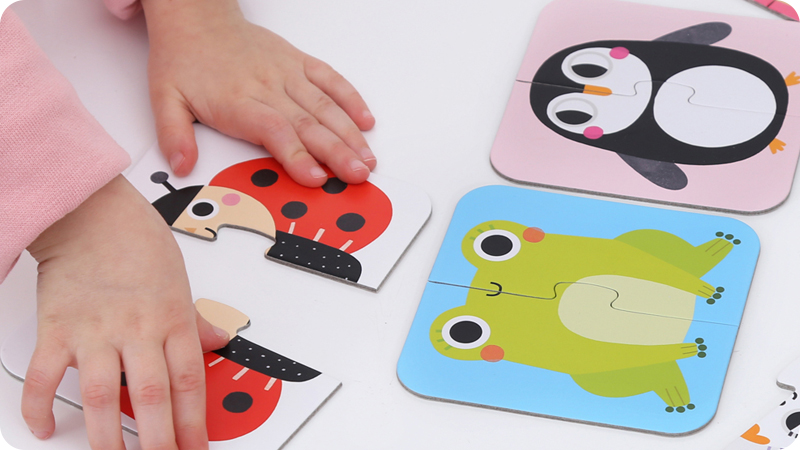 Dziecko rozwija się od najwcześniejszych etapów życia, dlatego warto zadbać o jego rozwój w najlepszy sposób. Pomóc mogą w tym puzzle Układam połówki Zwierzątka, które przeznaczone są dla dzieci, które ukończyły 18 miesiąc życia. Zestaw składa się z 8 dużych, dwuelementowych układanek, które wspomogą rozwój manualny Twojego malucha. Polega ona na dopasowaniu do siebie dwóch połówek zwierzątek. Zademonstruj maluchowi, które kształty pasują do siebie oraz opowiadaj co znajduje się na ilustracjach.