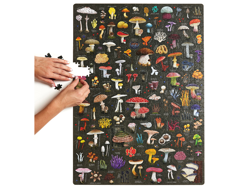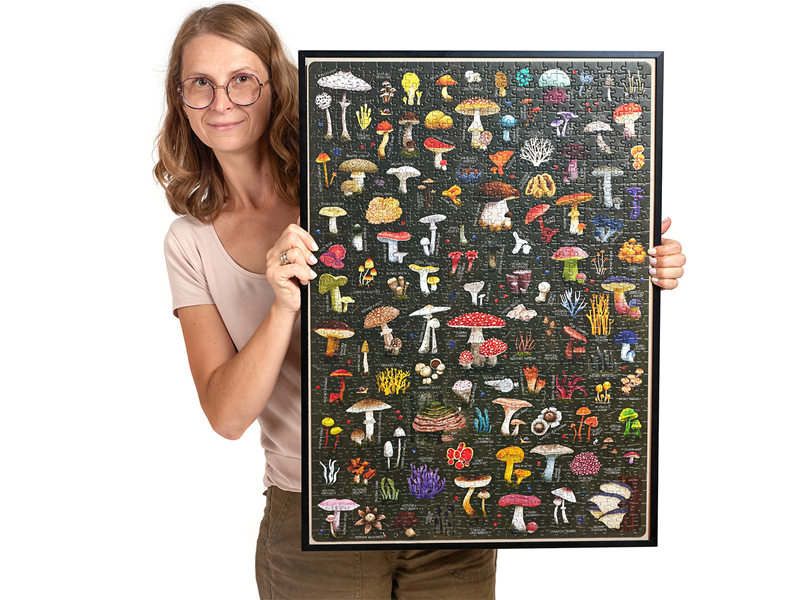 Poznajcie piękne i różnorodne królestwo grzybów.. Puzzlove CzuCzu Grzyby składają się aż z 1000 elementów. To nie lada wyzwanie. Sprawcie piękny prezent sobie lub znajomym grzybiarzom, grzybiarkom, wielbicielom przyrody i jesieniarom. Gotowa ilustracja o wymiarach 48 x 68 cm może stać się piękna ozdobą leśnej chatki lub pokoju. Wytrwałość i bystre oko wytrenowane podczas wyszukiwania elementów przyda się podczas grzybobrania.