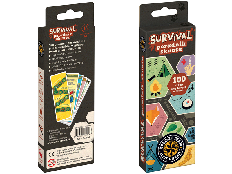 Pora na pierwszą wyprawę z Twoim dzieckiem? Książeczka Xplore Team Survival to zbiór praktycznych wiadomości z wielu dziedzin, który pomoże w przetrwaniu zarówno pierwszej wyprawy, jak i tych kolejnych. Dowiecie się z niej, jak bezpiecznie obchodzić się z ogniem oraz przygotować posiłek w lesie. Ale to nie wszystko! Znajdziecie w niej informację na temat udzielania pierwszej pomocy, a także jak zbudować szałas. Do tego poznacie różne sposoby na tropienie zwierząt lub na poradzenie sobie z upałem. Książeczka jest niewielkich rozmiarów, więc spokojnie zmieści się w plecaku. Natomiast Ty i Twoje dziecko, będzie gotowi na każdą przygodę!