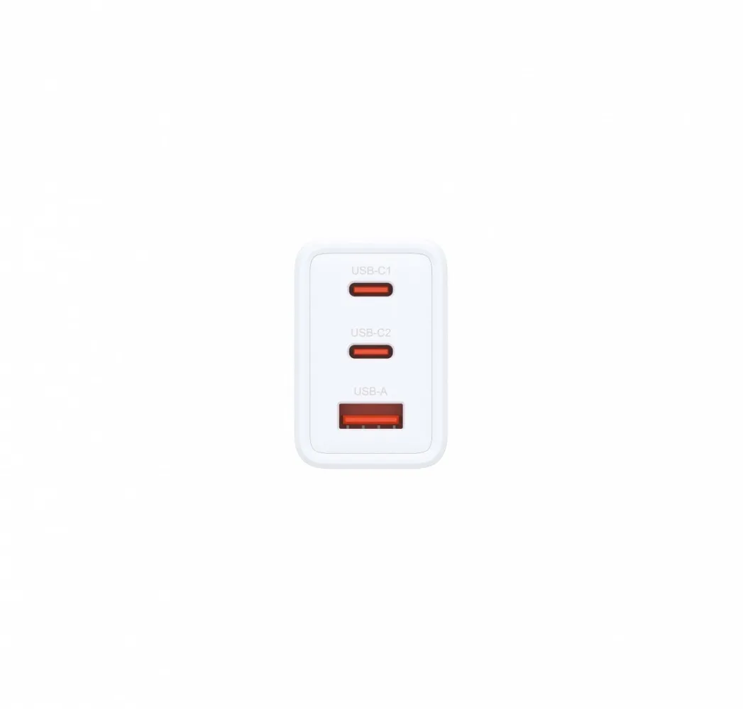 - Trzy porty USB-C/USB-A dwa porty USB-C i jeden USB-A umożliwiają jednoczesne ładowanie 3 urządzeń.