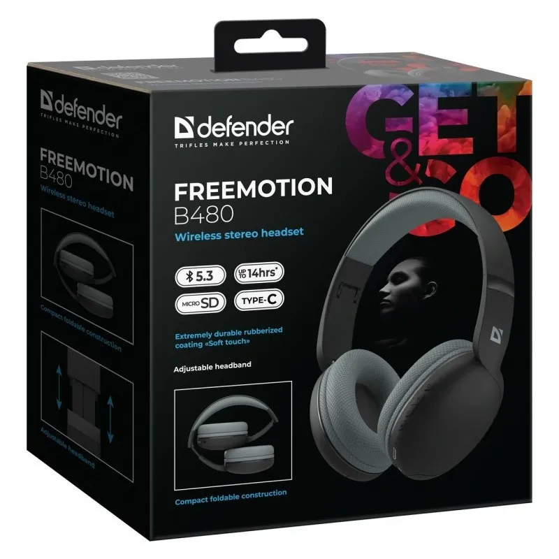 Bezprzewodowy zestaw słuchawkowy FreeMotion B480. Lekki i wygodny Bezprzewodowy zestaw słuchawkowy z przyjemną powłoką i dobrym dźwiękiem. Gniazdo na kartę Micro SD, czas działania - do 14 godzin.