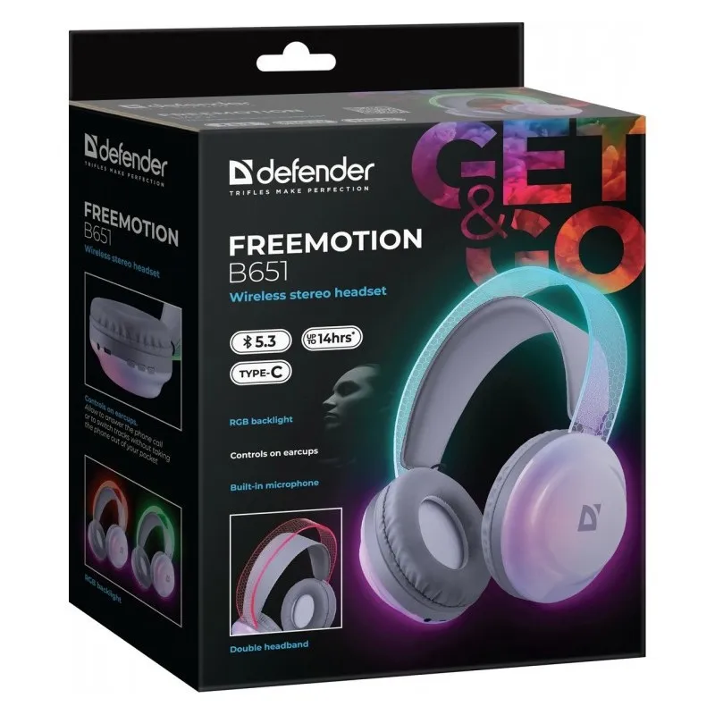 Peryferia i eksploatacjaGłośniki/mikrofony/słuchawkiDefender Słuchawki bezprzewodowe nauszne FREEMOTION B651 podświetlane