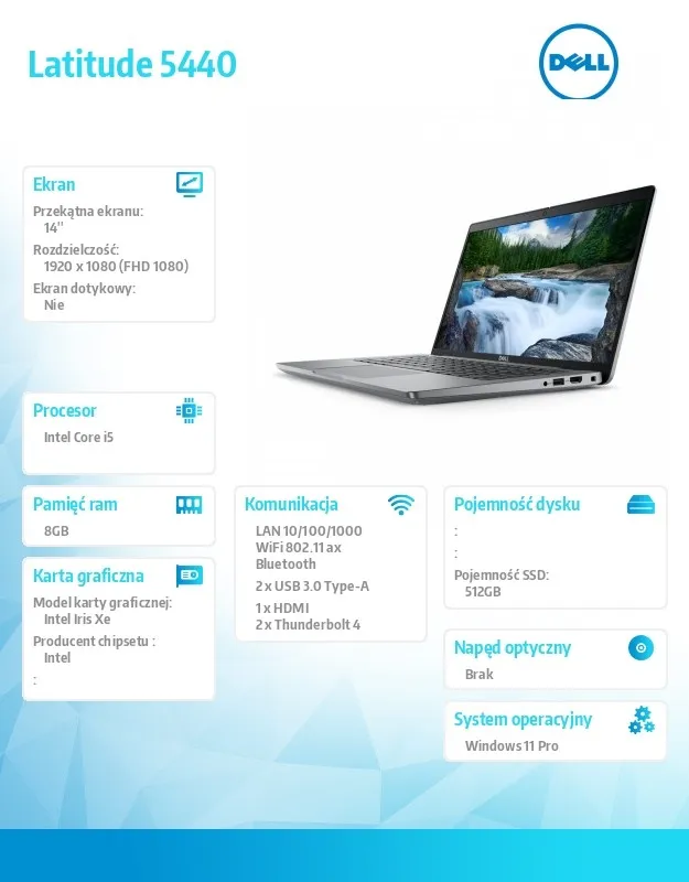 Opis dotyczy serii notebooków Latitude 5440. Rzeczywiste cechy mogą się różnić w zależności od konfiguracji notebooka.