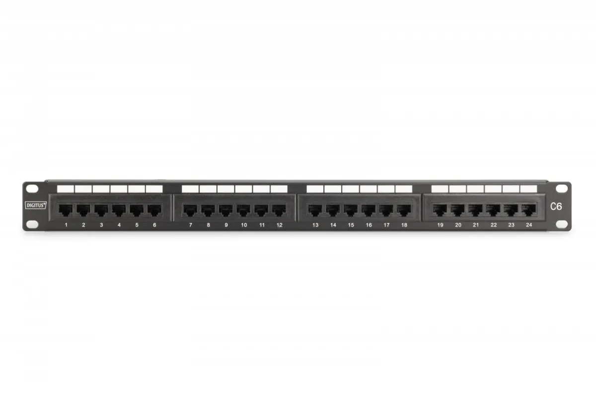 Patch-panel CAT 6 firmy DIGITUS został wyprodukowany zgodnie z wymaganiami Link Performance Class E, dla częstotliwości do 250 MHz, ISO/IEC 11801 i EN 50173 oraz posiada certyfikat UL. Obudowa wykonana jest z 1,5 mm ocynkowanej stali walcowanej na zimno - doskonale nadaje się do montażu w szafie Rack 19".