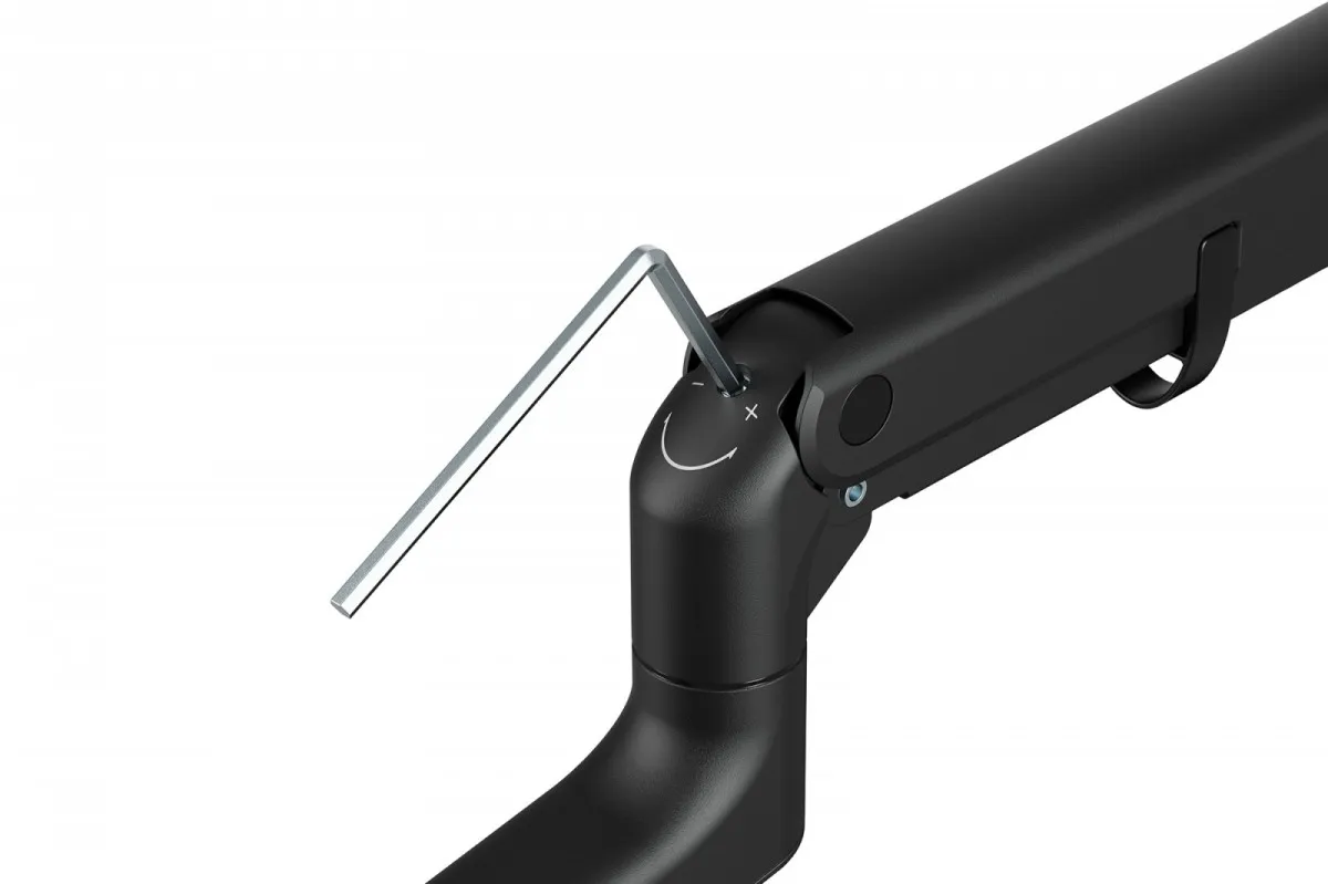 Zintegrowany system sprężyn gazowych z regulowanym mechanizmem napinania sprężyny umożliwia ustawienie monitora bez wysiłku i precyzyjnie - zgodnie z indywidualnymi wymaganiami. Dzięki dużemu zakresowi ruchu, uchwyt umożliwia pochylanie, obracanie i płynną regulację wysokości monitora, zapewniając ergonomiczną pracę i optymalny komfort oglądania. Funkcja szybkiego zwalniania VESA umożliwia szybki montaż lub demontaż ekranu bez użycia narzędzi, a szybkozłączka zapewnia szybki montaż ramion. Uchwyt jest w pełni montowany na biurku i oferuje dwie elastyczne opcje montażu - zarówno za pomocą zacisku biurkowego, jak i przelotki. Dzięki zintegrowanemu zarządzaniu kablami stacja robocza zawsze pozostaje uporządkowana. Dodatkowy uchwyt na drążek rozszerza możliwości regulacji i uzupełnia funkcjonalną konstrukcję.