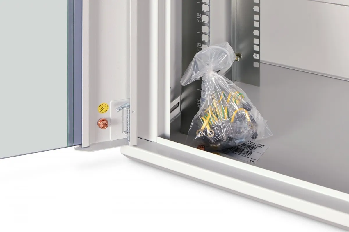 Szafy sieciowe serii Dynamic-N do montażu naściennego zostały opracowane z myślą o prostej i szczególnie ekonomicznej rozbudowie sieci. Dach, podstawa i tylny panel każdej obudowy są wyposażone we wstępnie wycięte wloty kablowe. Obudowa dachowa jest również wyposażona w otwór na moduł wentylatora. Wewnątrz zainstalowano dwie pary ocynkowanych szyn profilowych 483 mm (19"), oznaczonych jednostkami wysokości, które można odczytać w obu kierunkach. Ich głębokość można regulować. Każda obudowa ma solidną stalową konstrukcję wykonaną z blachy stalowej o grubości do 1,2 mm. Kolorystyka ma postać elektrostatycznego malowania proszkowego w standardowych kolorach szarym (RAL 7035) i czarnym (RAL 9005). Zdejmowane panele boczne oraz zamykane i zdejmowane drzwi przednie poprawiają dostępność. Zawiasy drzwi można wymienić. Montaż na ścianie odbywa się w dwóch prostych krokach: dostarczoną płytę montażową przykręca się do ściany, a następnie łączy z obudową. Aby uprościć logistykę, seria Dynamic-N jest dostarczana w stanie niezmontowanym w płaskim opakowaniu zajmującym niewiele miejsca. Obudowę naścienną można szybko i łatwo zamontować, korzystając z dołączonej instrukcji montażu.