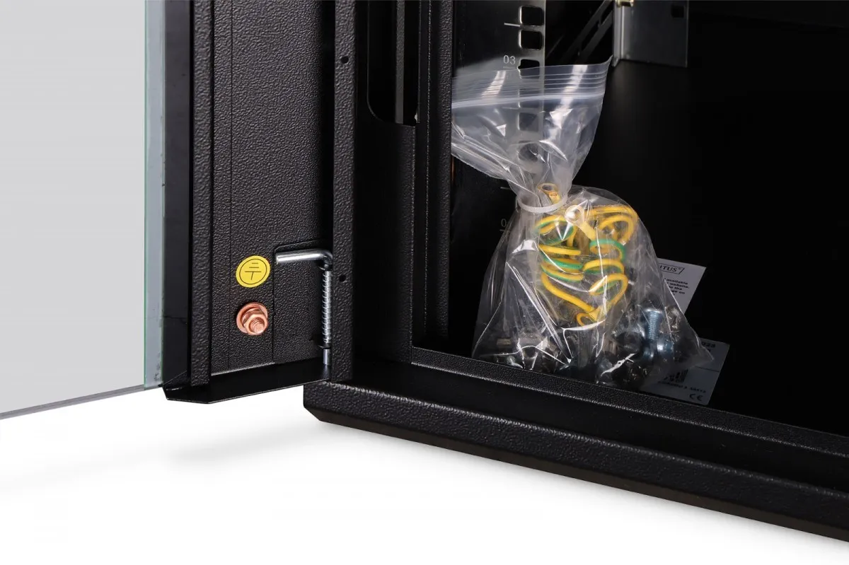 - Możliwość wprowadzenia kabli z tyłu, na dachu i w podstawie (wstępnie wycięte otwory)