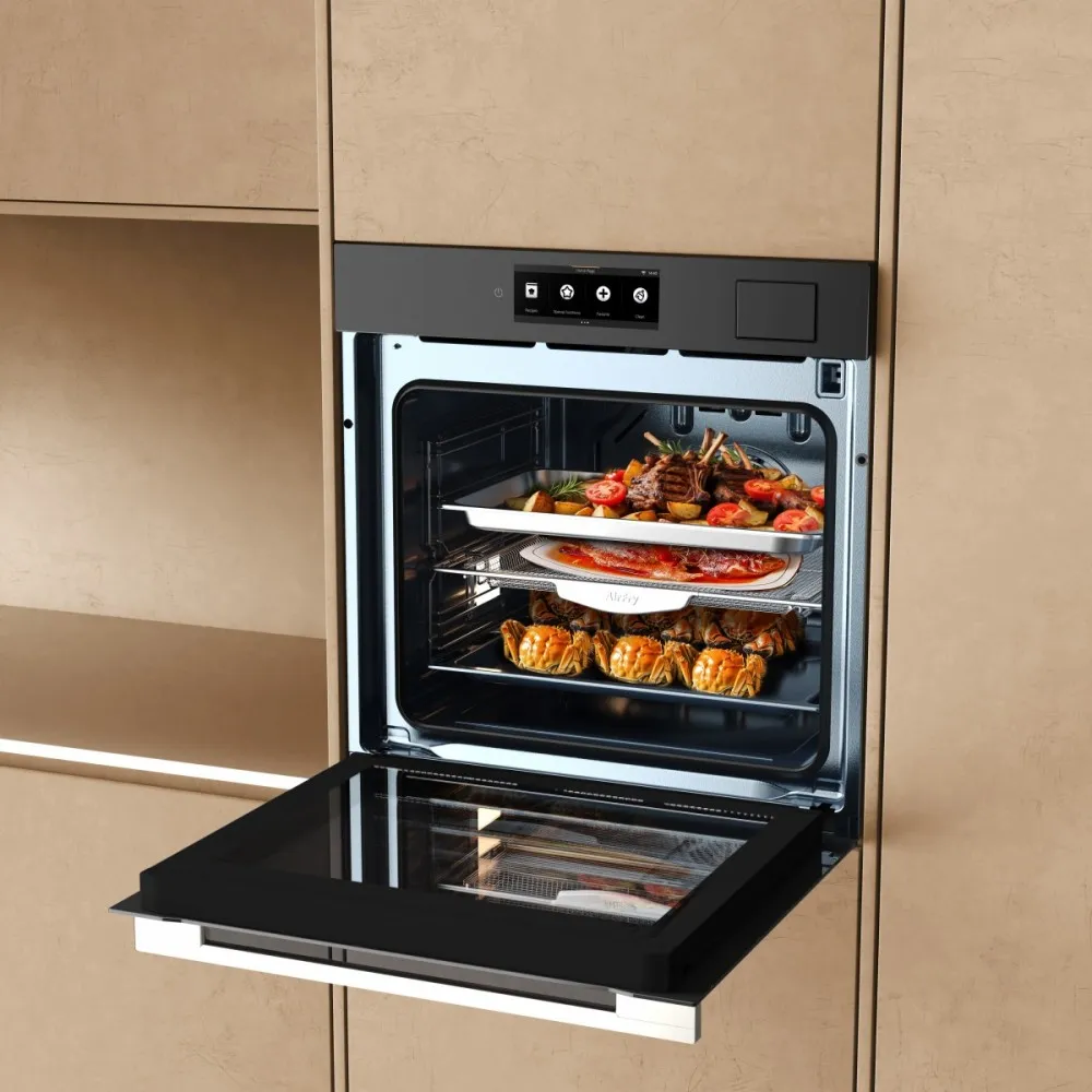 Wyposażony w system wtrysku pary o mocy 1600 W, który wnika głęboko w potrawy, zapewniając szybsze gotowanie, lepsze zatrzymywanie wilgoci i delikatną strukturę. Obsługuje profesjonalne tryby gotowania parowego, w tym sous-vide, parowanie w wysokiej temperaturze oraz odgrzewanie parowe. Zbiornik na wodę 1,2 l oraz inteligentna kontrola wilgotności dostosowują ilość pary do składników, zapobiegając przesuszeniu lub rozmiękczeniu potraw. Podczas gotowania owoców morza, takich jak małże, para o wysokiej temperaturze szybko otwiera skorupki i zatrzymuje świeży, śródziemnomorski aromat.