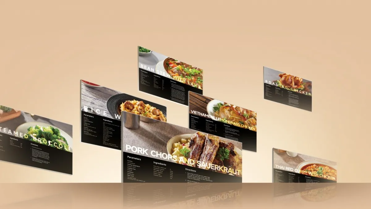 Zawiera 149 przepisów, które automatycznie dobierają idealną temperaturę, czas i tryb grzania, a przejrzysty interfejs prowadzi krok po kroku.