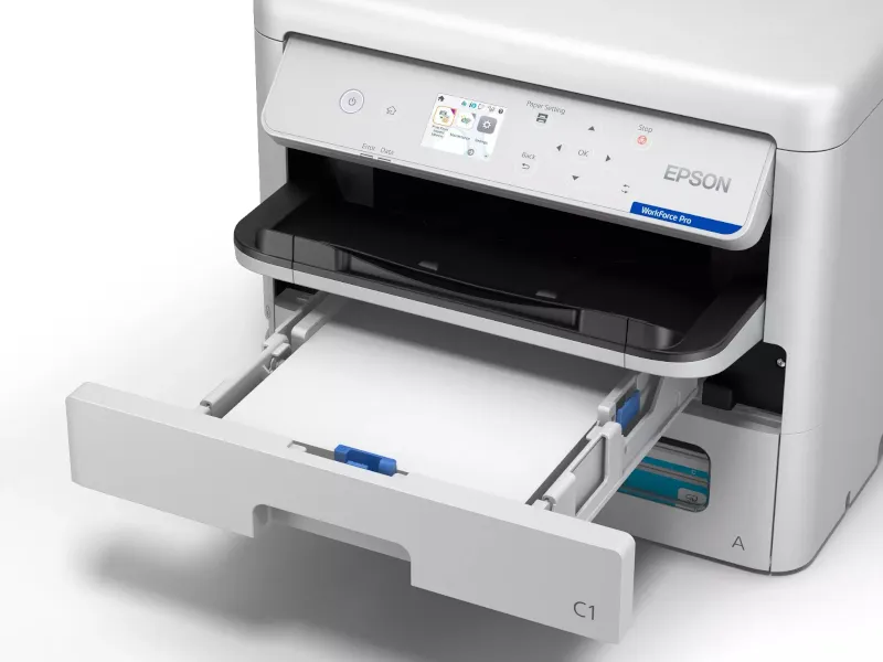 Epson WorkForce Pro EP-C800RDW to wydajna, profesjonalna drukarka kolorowa stworzona z myślą o małych i średnich biurach, które oczekują szybkich, ekonomicznych i niezawodnych wydruków. Urządzenie łączy nowoczesną technologię atramentową Epson z funkcjami zwiększającymi efektywność pracy, oferując wysoką jakość kolorowych dokumentów przy niskich kosztach eksploatacji. Model EP-C800RDW wyróżnia się szybkim drukiem, automatycznym drukiem dwustronnym oraz prostym zarządzaniem zadaniami biurowymi, dzięki czemu idealnie sprawdza się w codziennej pracy zespołowej. To rozwiązanie, które pozwala firmom oszczędzać czas i pieniądze, nie rezygnując z profesjonalnej jakości wydruków.