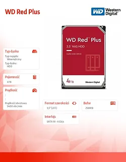 Dysk 3,5 cala WD Red Plus 4TB CMR 256MB/5400RPM