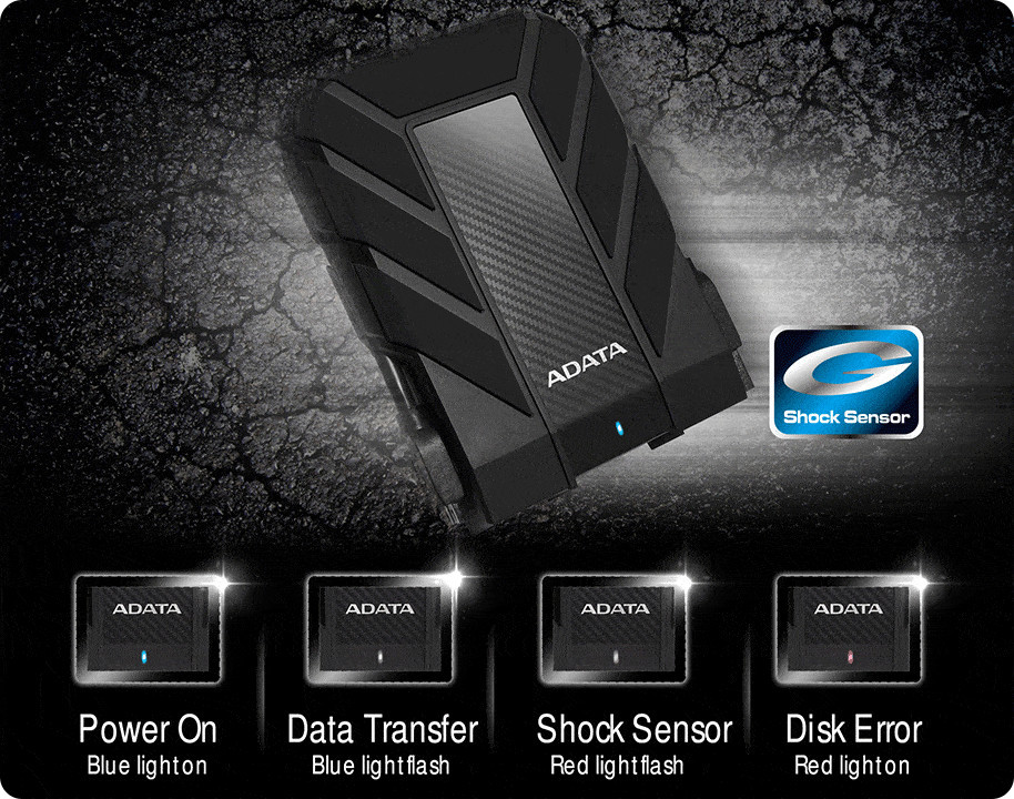 Mniejsze dyski zewnętrzne podtrzymują swoją pracę nawet po upadku lub gdy doświadczą wstrząsu, co prowadzi do błędów i tworzenia się uszkodzonych sektorów. Czujniki Shock, w które został wyposażony dysk HD710 Pro, niezwłocznie po wykryciu wstrząsu zatrzymują pracę dysku. Po zakończeniu wibracji praca nośnika jest wznawiana. O wszystkim informuje wskaźnik na obudowie.