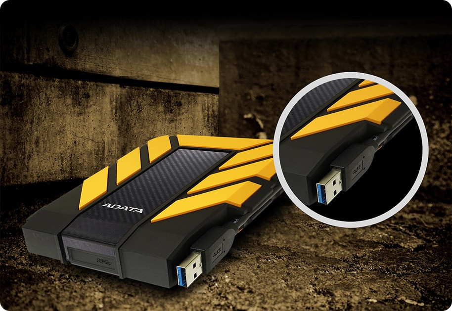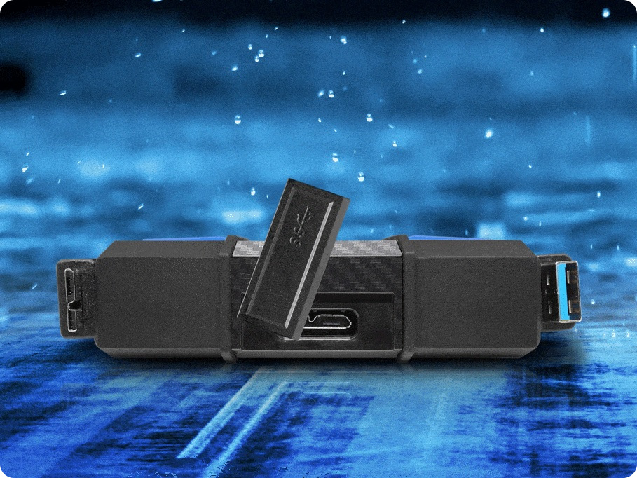 Doświadczenie marki ADATA w projektowaniu dysków zewnętrznych pozwoliło stworzyć dysk całkowicie odporny na działanie pyłu i wody. HD710 Pro z powodzeniem przeszedł test zanurzenia w wodzie przez 60 minut na głębokości 2 metrów - to więcej niż przewidują wymagania normy IEC IPX8! Gotowy na nurkowanie? Pełna odporność na działanie wody obowiązuje tylko przy zamkniętej osłonie portu USB.