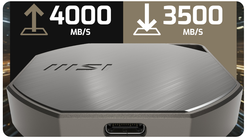 MSI DATAMAG 40Gbps to wysokowydajny przenośny dysk SSD zaprojektowany z myślą o entuzjastach technologii, którzy wymagają wyjątkowej szybkości i niezawodności. Dzięki prędkości transferu, przy wykorzystaniu złącza USB4 40 Gbit/s dochodzącej do 4000 MB/s, lekkiej aluminiowej obudowie zapewniającej skuteczne odprowadzanie ciepła oraz pełnej obsłudze nagrań w formacie ProRes realizowanych na kompatybilnych z tym standardem iPhone’ach, napęd ten doskonale nadaje do szybkiej i płynnej pracy w podróży.