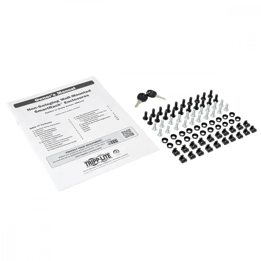 SRW12U jest dostarczany w pełni zmontowany i gotowy do montażu na ścianie lub można użyć opcjonalnego zestawu kółek SRCASTER firmy Tripp Lite, aby przekształcić go w mobilny stojak. Kwadratowe otwory montażowe z gwintem 12-24 oraz ponumerowane miejsca na stojaki ułatwiają instalację sprzętu. Pionowe szyny montażowe można regulować w odstępach co 7/8 cala, aby pomieścić sprzęt o głębokości do 16,5 cala, taki jak przełączniki sieciowe i panele krosowe.