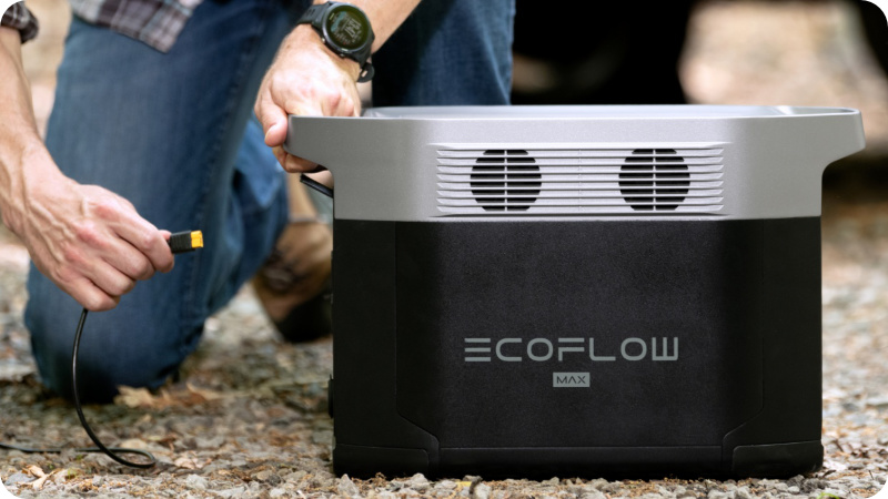 EcoFlow Delta Max to przenośna stacja zasilania, z akumulatorem o pojemności 2 kWh, który uzupełnisz wykorzystując gniazda zasilania AC, ładowarkę samochodową, panele fotowoltaiczne czy inteligentny generator. Urządzenie jest zdolne zasilić większość Twoich sprzętów z mocą do 3400 W. Podczas przerwy w dostawie prądu możesz więc podłączyć do stacji EcoFlow Delta Max urządzenia takie jak lodówka, suszarka, blender, kuchenka mikrofalowa i wiele więcej.