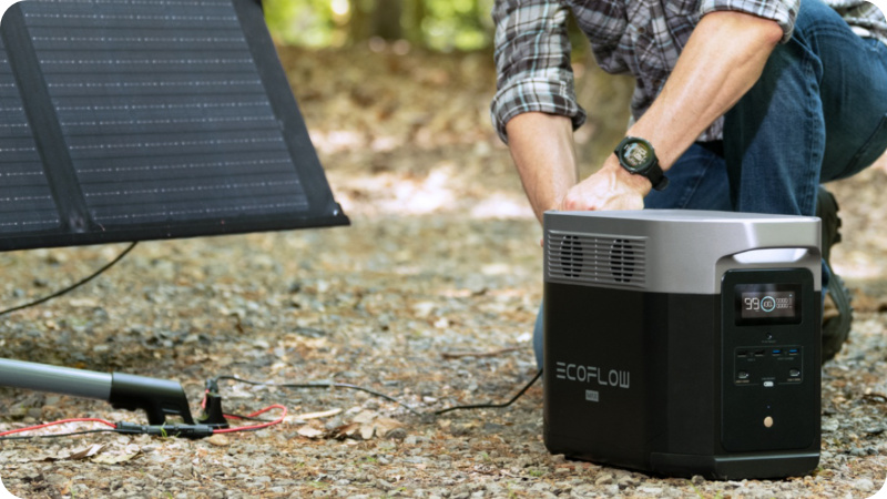 EcoFlow Delta Max może zostać podłączony do maksymalnie dwóch paneli słonecznych EcoFlow o mocy 400W, zyskując moc ładowania 800W. Złącze MC4 i zakres napięcia 11-100V umożliwia wykorzystanie również innych paneli solarnych. Podłączając stację zasilania do gniazda AC możesz szybko naładować akumulator od 0 do 80% w około godzinę.