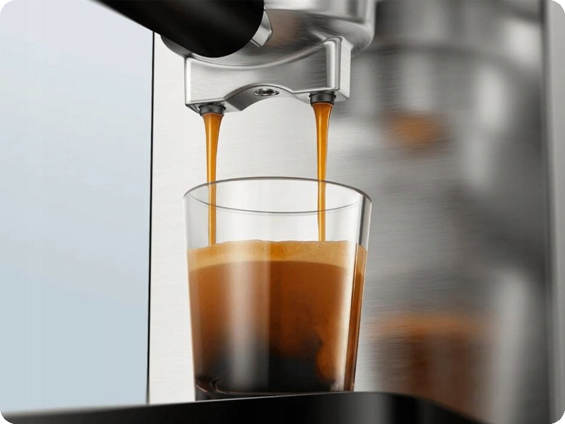 Zintegrowany spieniacz do mleka pozwala w kilka sekund przygotować perfekcyjną piankę do cappuccino lub latte. Regulowany strumień pary umożliwia pełną kontrolę nad teksturą mleka – od lekkiej pianki po gęstą, kremową konsystencję. Dzięki temu każdy napój smakuje jak z kawiarni, niezależnie od Twojego doświadczenia. Obsługa urządzenia jest intuicyjna, a ergonomiczna dźwignia i przejrzysty interfejs sprawiają, że parzenie kawy staje się codziennym rytuałem.