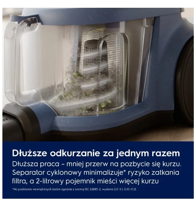 Duża siła ssania do usuwania kurzu i brudu ze wszystkich powierzchni.