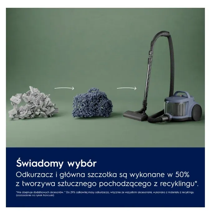 Odkurzacz zaprojektowany specjalnie dla właścicieli zwierząt. Ma ssawkę Turbo, pojemnik 2 l, kompaktową konstrukcję do łatwego przechowywania i separator cyklonowy zabezpieczający przed zatykaniem. Filtracja HEPA i tworzywo sztuczne pochodzące z recyklingu sprawiają, że jest wydajny i przyjazny dla środowiska.