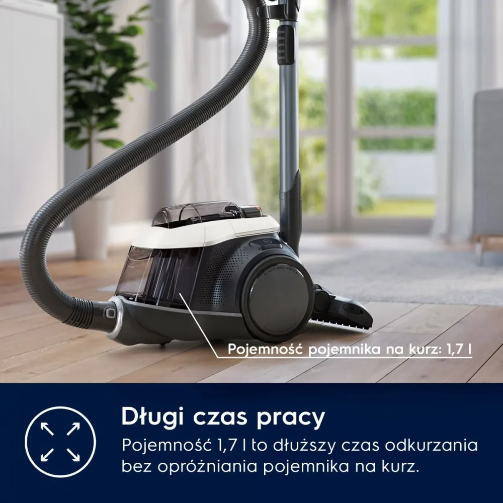 Intuicyjny system opróżniania pojemnika na kurz i łatwo dostępny filtr umożliwiają szybką i łatwą obsługę.