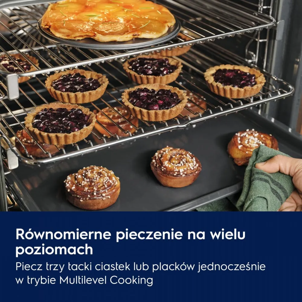 Dodatkowa trzecia grzałka wspomaga równomierne pieczenie nawet na trzech poziomach jednocześnie ciast lub ciasteczek.