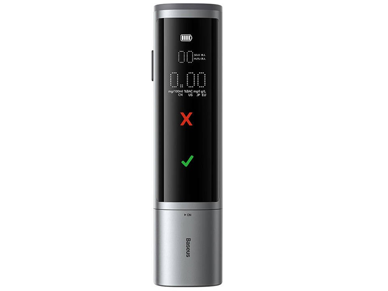 Elektroniczny alkomat bezustnikowy Baseus posiada zaawansowany czujnik elektrochemiczny i jest przeznaczony do indywidualnego pomiaru stężenia alkoholu w wydychanym powietrzu. Po pomiarach urządzenie przelicza uzyskane dane dotyczące stężenia alkoholu we krwi i wyświetla wynik na wyświetlaczu. Alkomat reaguje dość szybko. Czas na uruchomienie urządzenia wynosi 10 sekund, natomiast analiza wprowadzonej próbki powietrza trwa około 3 sekundy.