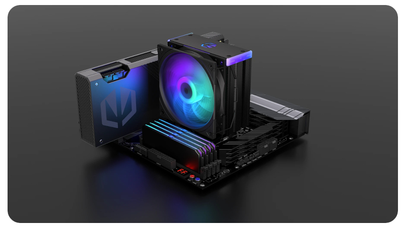 Sercem ENDORFY Fortis 5 Black ARGB jest masywny, gęsto użebrowany radiator, który w połączeniu z podstawą wyposażoną w sześć ciepłowodów skutecznie odprowadza energię cieplną z procesora. Dzięki precyzyjnej optymalizacji do jednokierunkowego przepływu powietrza, cooler oferuje wydajność chłodzenia na najwyższym poziomie w swojej klasie – niezależnie od tego, czy grasz, tworzysz, czy pracujesz pod dużym obciążeniem.