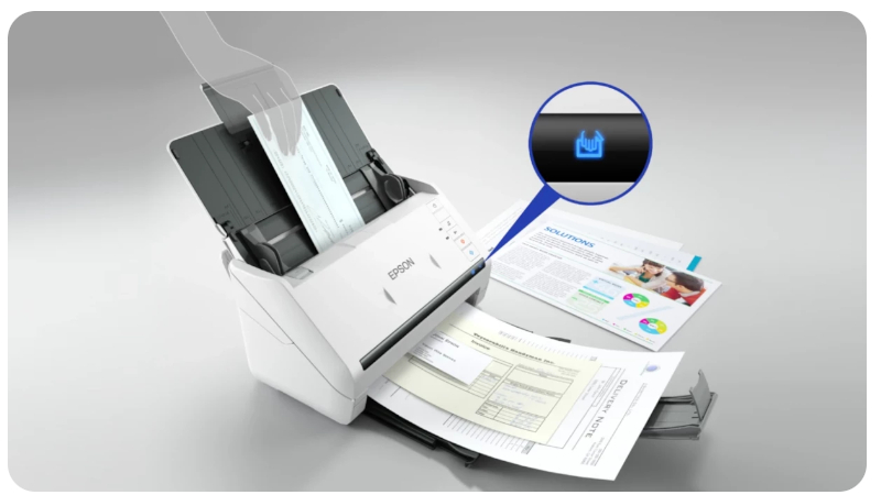 Urządzenie wyposażono w aktywny system rolek separujących, który skutecznie zapobiega jednoczesnemu pobraniu dwóch arkuszy, gwarantując, że żadna strona nie zostanie pominięta. Dodatkowo funkcja wykrywania podwójnych arkuszy umożliwia bezproblemowe skanowanie trudnych materiałów, takich jak koperty czy dokumenty z naklejonymi notatkami. Dzięki trybowi automatycznego skanowania Epson WorkForce DS-770II doskonale radzi sobie z przetwarzaniem bardzo dużych wolumenów dokumentów, które mogą być zapisywane jako jeden uporządkowany plik. To niezawodne rozwiązanie dla firm, które oczekują szybkości, dokładności i pełnej kontroli nad procesem cyfryzacji dokumentów.