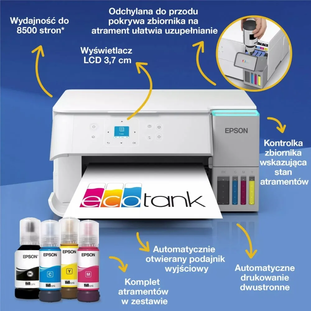 Peryferia i eksploatacjaDrukarkiDrukarki i urządzenia wielofunkcyjneEpson Urządzenie wielofunkcyjne L4366 ITS A4/33ppm/WiFi-d/duplex/5.2kg/biala