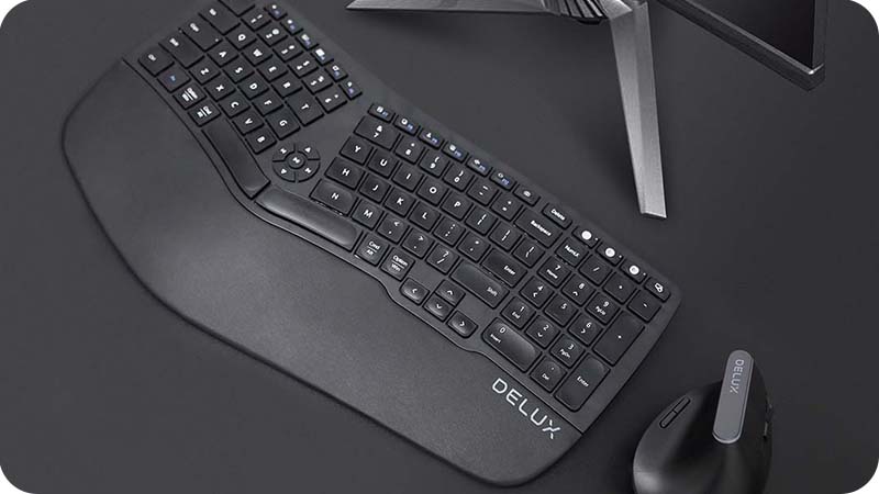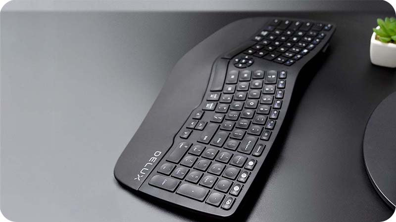 Ergonomiczna klawiatura Delux GM902 została stworzona z myślą o osobach, które spędzają dużo czasu przy komputerze. Zaprojektowano ją w taki sposób, aby mogła zapewnić maksymalny komfort użytkowania. Możesz podłączyć ją do komputera za pomocą kabla albo bezprzewodowo - przez Bluetooth lub 2.4G. Klawiatura ma 108 klawiszy z przełącznikami nożycowymi i jest niezwykle wytrzymała.