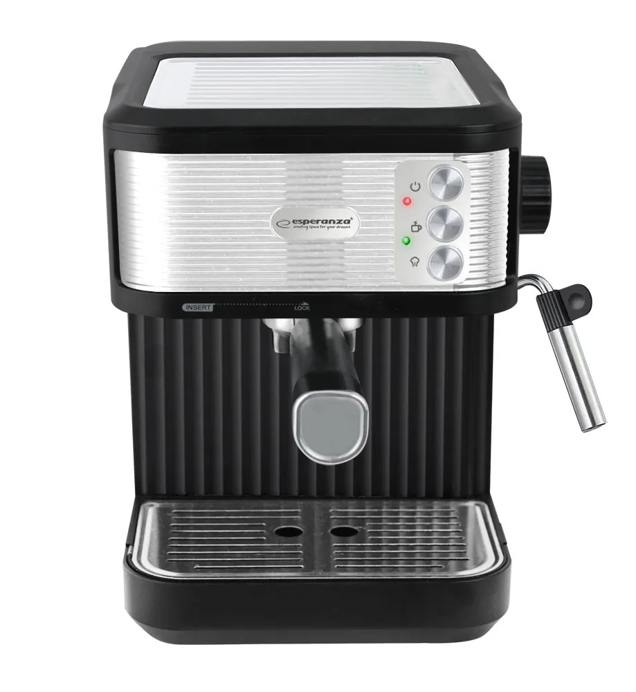 Esperanza CATURRA to funkcjonalny i elegancki ekspres ciśnieniowy, który pozwala przygotować doskonałą, aromatyczną kawę w domowych warunkach. Dzięki pojemnemu zbiornikowi na wodę o pojemności 1.8 litra można zaparzyć nawet do 10 filiżanek kawy, co sprawdzi się zarówno w codziennym użytkowaniu, jak i podczas spotkań z rodziną czy współpracownikami. Moc 850 W i ciśnienie 20 barów gwarantują szybkie parzenie napoju o intensywnym smaku i głębokim aromacie. Ekspres został wyposażony w funkcjonalny spieniacz do mleka, który umożliwia przygotowanie kremowego cappuccino lub delikatnego caff latte. Dodatkowym udogodnieniem jest podgrzewana płyta na górze urządzenia idealna do ogrzewania filiżanek przed podaniem napoju. Płynna regulacja emisji pary zapewnia pełną kontrolę nad procesem parzenia, a nowoczesny design sprawia, że ekspres świetnie komponuje się z każdą kuchnią.