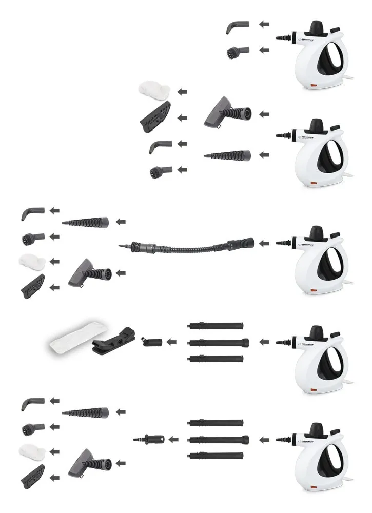 - Gorąca para do dezynfekcji i usuwania zabrudzeń