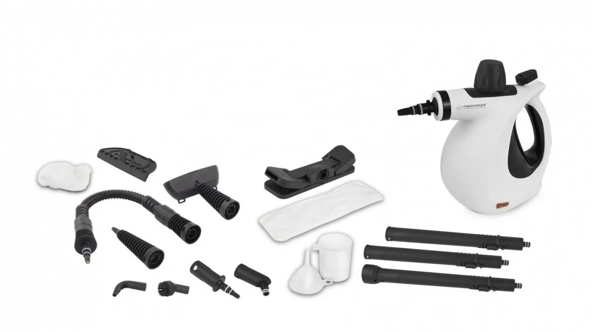 Myjka parowa Esperanza ASALTO to praktyczne i wszechstronne urządzenie, które skutecznie czyści, dezynfekuje i odświeża różnego rodzaju powierzchnie oraz tkaniny bez konieczności użycia detergentów. Dzięki wysokiej temperaturze pary (do 115°C) i maksymalnemu ciśnieniu roboczemu 3 bar, z łatwością usuwa bakterie, kurz, roztocza i inne zabrudzenia z fug, płytek, szyb, armatury łazienkowej, tapicerek, a także zasłon czy ubrań. Krótki czas nagrzewania (35 minut) oraz ciągły strumień pary przez nawet 10 minut sprawiają, że urządzenie jest gotowe do działania niemal od razu. Ergonomiczna konstrukcja, bezpieczna nasadka z blokadą dziecięcą oraz aż 16 wielofunkcyjnych akcesoriów umożliwia skuteczne dotarcie do trudno dostępnych miejsc i bezpieczne użytkowanie. Długi, 3-metrowy przewód zapewnia wygodę i swobodę ruchów podczas pracy. To idealne rozwiązanie dla osób ceniących higienę, bezpieczeństwo oraz ekologiczne podejście do czyszczenia.