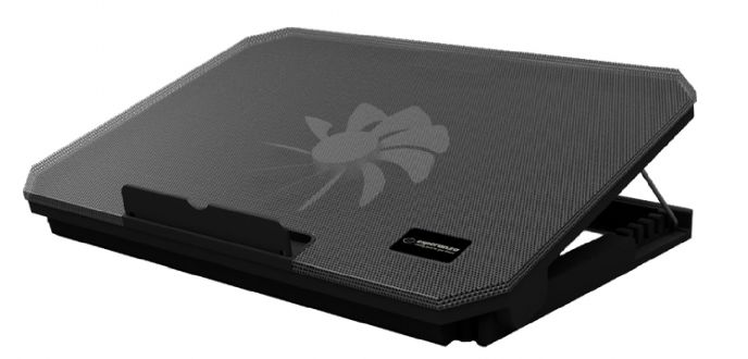 Podkładka chłodząca pod notebooka o nowoczesnym, stylowym kształcie. Posiada wbudowany niezwykle cichy, podświetlany, duży wentylator. Usuwa on ciepło wytwarzane pod spodem notebooka, chłodząc go i obniżając temperaturę pracy jego podzespołów co zapewnia stabilną pracę oraz dłuższą żywotność baterii. Wbudowany 1-portowy Hub USB 1.0 ułatwia podłączenie dodatkowych urządzeń i nie zajmuje miejsca na biurko. Solidnie wykonana, wytrzymała konstrukcja z łatwością utrzymuje ciężar notebooka. Nie wymaga zewnętrznych źródeł zasilania – zasilana z portu USB notebooka. Z boku wbudowany wyłącznik zasilania. Nie wymaga instalacji. Trwała, wygodna i łatwa w przenoszeniu. Kompatybilna ze wszystkimi rodzajami notebooków.