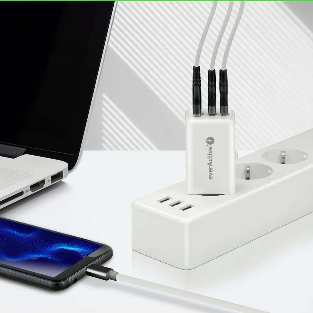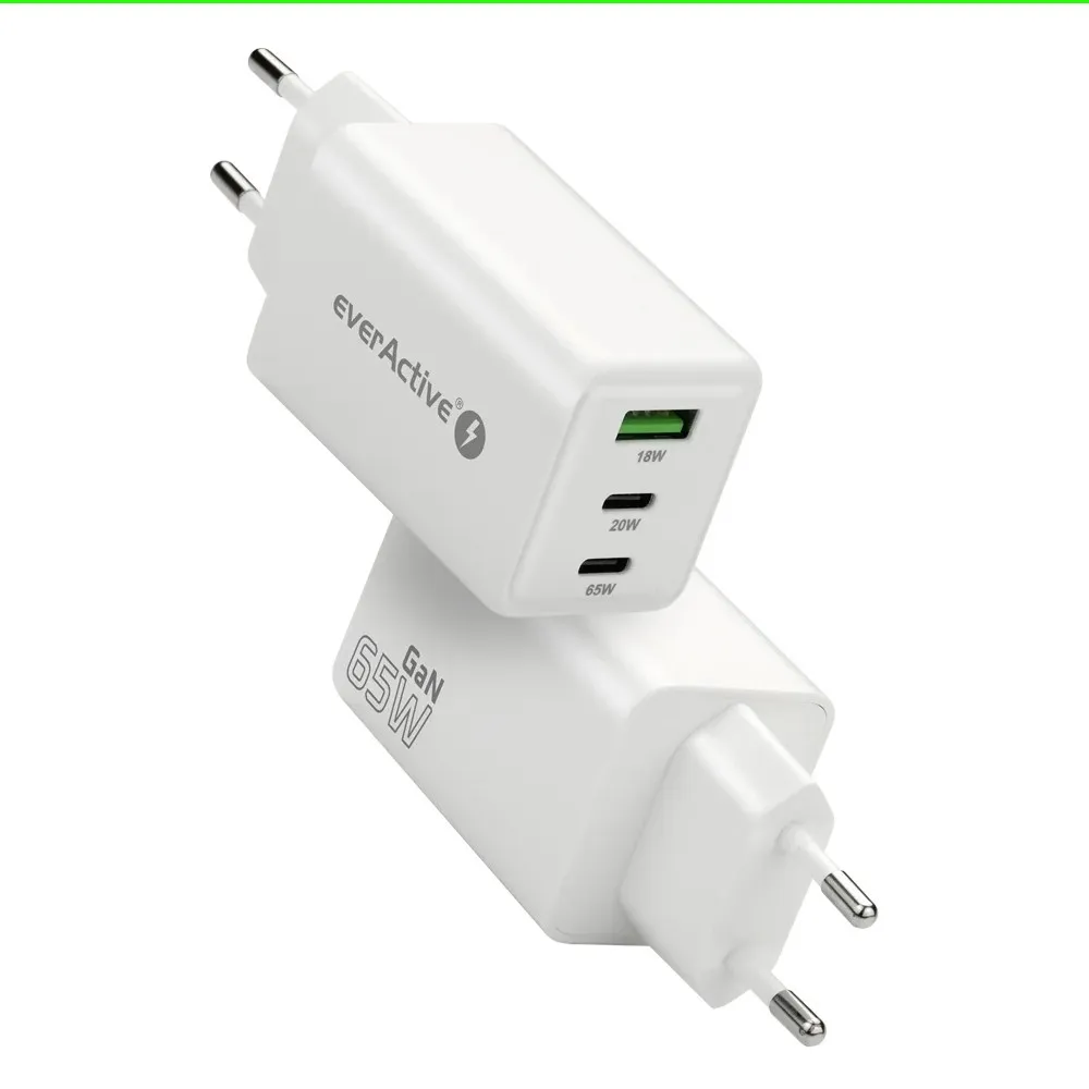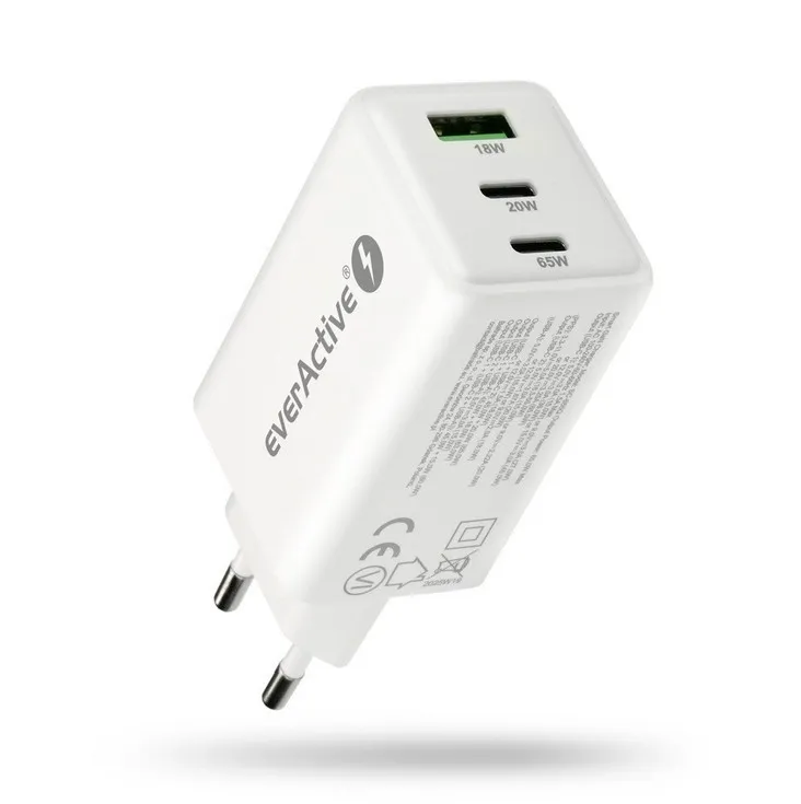 everActive Ładowarka sieciowa GAN QC 4+ 65W 1XUSB 2XUSB-C biała SC-655Q