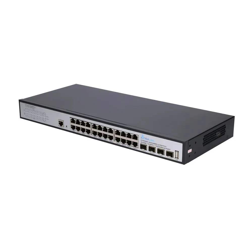 24-portowy przełącznik Gigabit Smart z 24 portami 1000BASE-T i czterema gniazdami 10G SFP+ zapewnia zaawansowane funkcje zarządzania z przepustowością przełączania 256 Gb/s. Extralink Hypnos jest wyposażony w porty 1000BASE-T, które zapewniają wyższe gigabitowe prędkości do 1000 Mbps z istniejącym okablowaniem Cat5e lub lepszym. Ten 24-portowy przełącznik gigabitowy zapewnia architekturę przełącznika o wysokiej wydajności, która znacznie upraszcza zadania modernizacji sieci LAN w celu zaspokojenia rosnącego zapotrzebowania na przepustowość. Funkcja Flow Control przełącznika umożliwia routerom i serwerom bezpośrednie łączenie się z przełącznikiem w celu szybkiego i niezawodnego przesyłania danych.