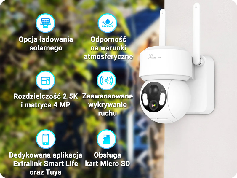 Do zarządzania kamerą Extralink SolarEye Pro służy dedykowana aplikacja mobilna Extralink Smart Life oraz Tuya. Aplikacja umożliwia zdalny dostęp do obrazu i ustawień kamery z dowolnego miejsca za pomocą smartfona lub tabletu. Można łatwo sprawdzić nagrania, dostosować ustawienia kamery i otrzymywać powiadomienia w przypadku wykrycia ruchu lub innych zdarzeń.
