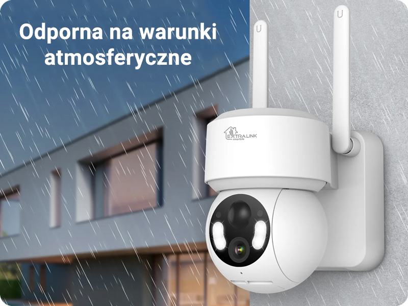 Kamera Extralink SolarEye Pro została zaprojektowana z myślą o pracy w trudnych warunkach atmosferycznych. Posiada stopień ochrony IP65, co oznacza, że jest odporna na pył oraz strumienie wody padające pod niskim ciśnieniem z dowolnego kierunku. Dzięki temu można ją bez obaw montować na zewnątrz, nawet podczas deszczu czy silnego wiatru. Ta cecha gwarantuje niezawodność działania kamery przez długi czas, niezależnie od pogody.