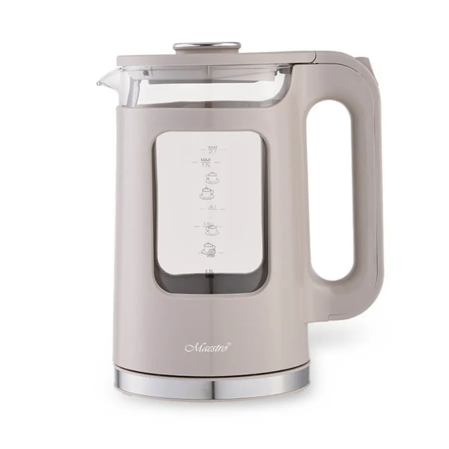 Czajnik elektryczny szklany Maestro MR-065-BEIGE łączy elegancję z nowoczesnością, oferując doskonałe połączenie funkcji i estetyki.