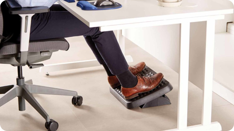 Podstawa pod stopy Fellowes przeznaczona jest dla osób pracujących przy biurku. Pozwala uzyskać wygodną pozycję stóp, poprawiając ergonomię pracy. Powierzchnia z wypustkami zaprojektowana została tak, aby masować stopy. Możliwa jest dwustopniowa regulacja podstawy. Pierwsza pozycja to wysokość 85mm, druga to 105 mm. Nachylenie można płynnie regulować do 25°.