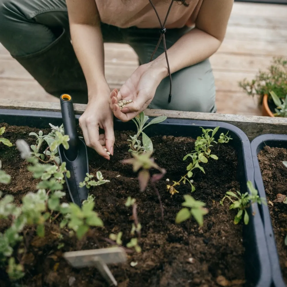 - Wąska, wyprofilowana głowica z zaostrzoną krawędzią idealnie sprawdzi się podczas sadzenia i przesadzania małych roślin.