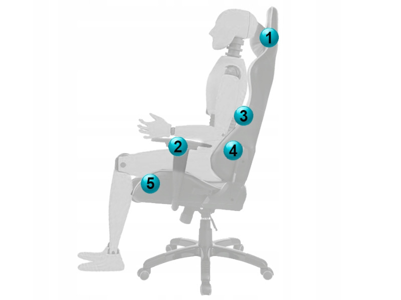- Głowa i kark - Zintegrowany zagłówek pozwoli wygodnie oprzeć głowę i zrelaksować się podczas pracy przy komputerze. A jako poduszka pod kark odciąży mięśnie, zapewni odpowiednie ułożenie głowy i szyi.
