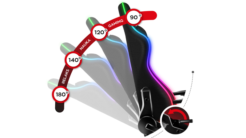 | Dodatkowe informacje: | Funkcja SoftFlex oświetlenie RGB Regulacja kąta nachylenia Mechanizm Tilt PLUS Gazowy siłownik |
