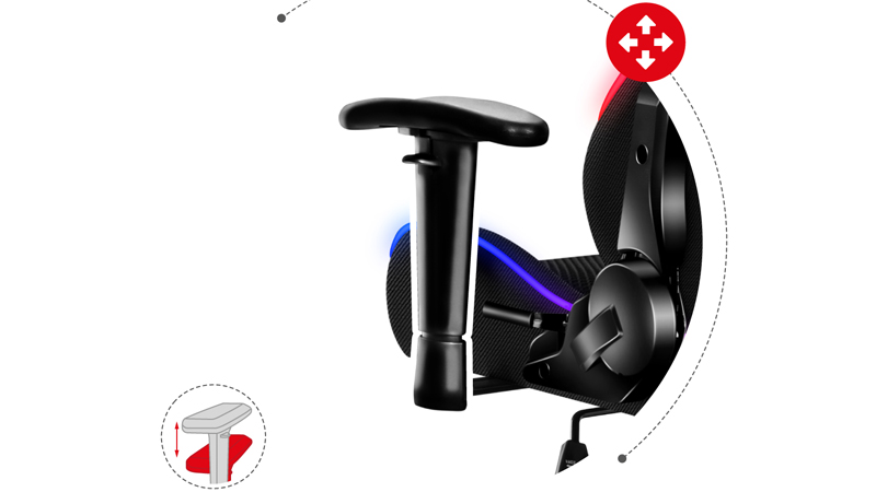 Wygodne podłokietniki z regulacją wysokości ArmRest 2D są wykonane z miękkiego, odpornego na odkształcenia materiału i pozwalają wygodnie oprzeć ręce. Podłokietniki zapewniają odpowiednie wsparcie przedramion, zmniejszają obciążenie barków i kręgosłupa.