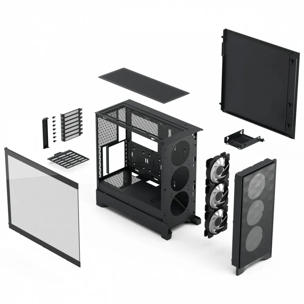 Zadbaj o chłodzenie podzespołów dzięki przedniemu panelowi z drobnej siatki o sześciennym wzorze oraz trzem dołączonym wentylatorom z łopatkami o zoptymalizowanym kształcie, zapewniającym mocny przepływ powietrza od razu po wyjęciu z pudełka.